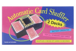 Plastová miešačka kariet. Napájanie na 4 AA batérie (nie sú súčasťou).