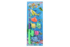Plastový rybársky prút o dĺžke cca 41 cm na konci s kotvičkou na chytanie. Súčasťou 5 rybičiek a 1 mušle o veľkosti cca 7 - 12 cm na konci s očkom na chytanie.