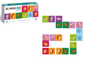 Obľúbená detská hra Domino s motívom farebných zvieratiek. jednoduché pravidlá hry rozvíja trpezlivosť a logiku rozpoznávania farieb a pomenovávania zvierat Balenie obsahuje 28 kartičiek s obrázkami zvierat.