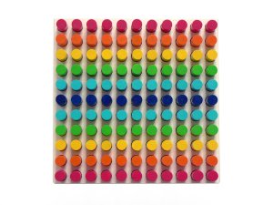 Rozmer hracej plochy: 21x21 cm Počet kolíčkov: 121 ks 6 ks predlôh Vek: 3+ Materiál: drevo Vyrobené 100% v Nemecku