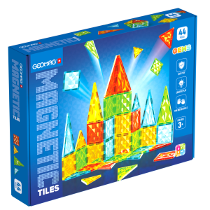 Geomag Magnetic Tiles 44 dielikov je kreatívna stavebnica, ktorá ponúka 44 priehľadných magnetických dielikov v štyroch jasných farbách – červenej, žltej, zelenej a modrej.