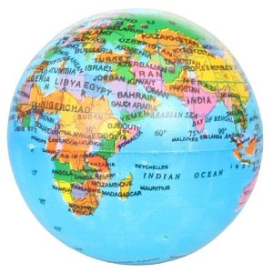 Mäkká penová loptička s priemerom 6 cm, ktorú je možné použiť ako pomôcku proti stresu či pre deti na spoznávanie mapy.