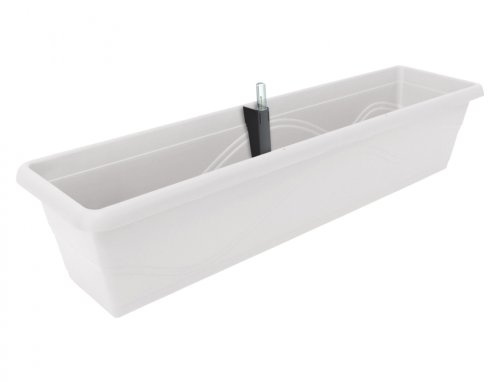 Samozavlažovací plastový kvetináč s hladinomerom a SMART systémom, ktorý je vybavený otvormi v rošte pre vhodné umiestnenie napájacieho dielu. Truhlíka má na jednej strane vyvýšené dno, to je vhodné odvŕtať na odtok prebytočnej dažďovej vody. Vyrobený z matného, kvalitného recyklovaného plastu. Český výrobok. Farba: biela. Šírka: 80 cm, výška: 17 cm, hĺbka: 19,5 cm.
