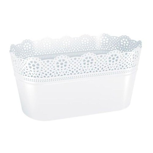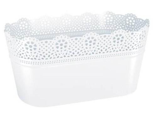 Plastový kvetináč LACE s vrchným dekoračným krajkovým vzorom.