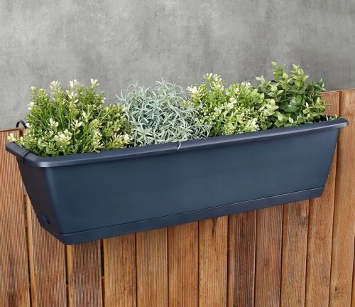 Pridajte do svojho domova praktickosť a štýl s naším okenným kvetináčom s háčikmi. Tento kvetináč je ideálny pre rôzne druhy rastlín a kvetov, a vďaka svojmu robustnému dizajnu a antracitovej farbe sa ľahko hodí do akéhokoľvek prostredia.