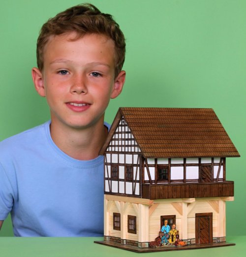 Drevená zlepovacia stavebnica, v ktorej je všetko potrebné na zostavenie vrátane návodu. Na zlepenie sa používa lepidlo na drevo a papier. Nie je súčasťou balenia.