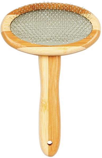 Hrebeň na odstraňovanie odumretej srsti bez podráždenia pokožky. Vhodný pre hustú, dlhú aj kučeravú srsť väčších plemien. Ergonomická rukoväť z ekologického bambusu. Vhodný pre psy aj mačky. V troch veľkostiach. Rozmery: 19,5 x 12 cm (dĺžka x šírka).