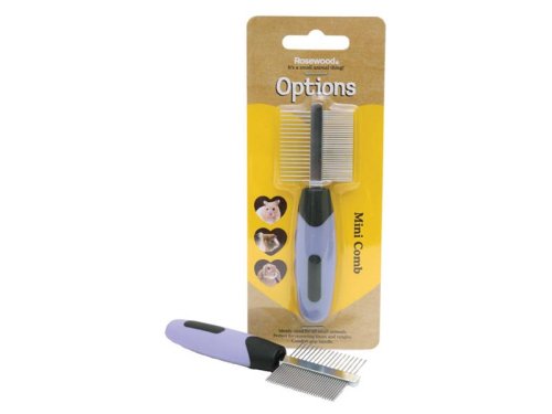 Obojstranný hrebeň na úpravu srsti malých zvierat. Jednoduchá manipulácia vďaka tvarovanej rukoväti. Pravidelné česanie udržuje srsť čistú a bez strapatých chlpov. Úprava srsti by mala byť vždy príjemný zážitok pre zviera aj pre majiteľov. Dĺžka 12 cm.