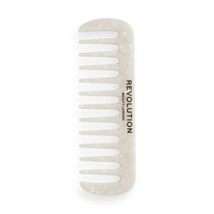 Skrotiť svoje kadere pomocou hrebeňa Revolution Haircare Natural Curl Wide Tooth Comb v bielej farbe, ktorý je určený predovšetkým pre kučeravé alebo silnejšie vlasy. Tento hrebeň s efektom vzhľadu živice sa ľahko udržuje, má dlhú životnosť a pomáha vysporiadať sa s nepoddajnými kaderami.