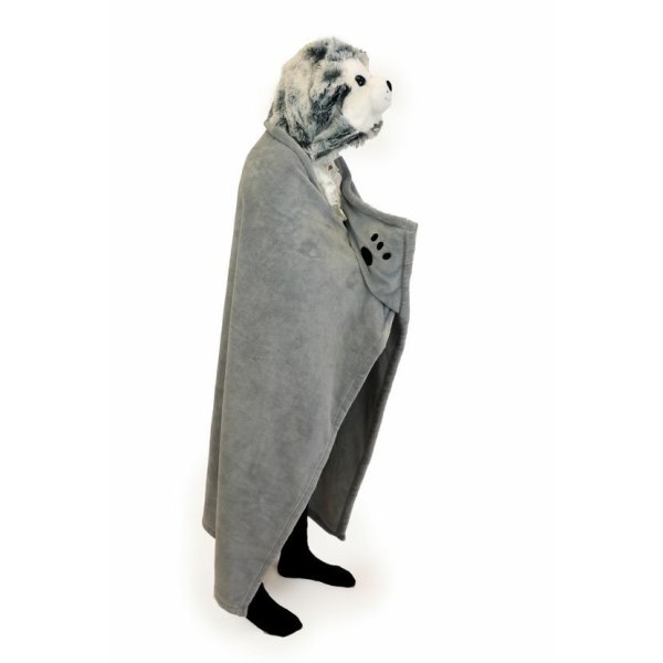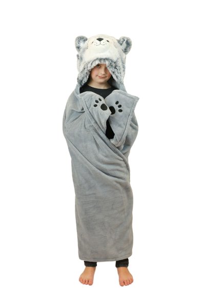 Zábavná, mäkučká, hrejivá deka s kapucňou s motívom zvieratka a dvoma rohovými vreckami na ruke s motívom zvieracích labiek. Táto dizajnová deka slúži nielen ako prikrývka , ale vďaka spomínanej kapucni a labkovým vreckám , je tiež vhodná na hranie, počas ktorého rozvíja u detí ich predstavivosť. Deka je vyrobená zo super mäkkého fleecového materiálu a doslova láka na zababušenie. Je veľmi príjemné sa do nej zabaliť vrátane celej hlavy, čo u niektorých menších detí navodzuje naozaj pocit bezpečia a pomáha ich upokojiť. Je praktická aj na cestách, pretože nezaberie veľa miesta a navyše každé dieťa ocenia, keď môže mať svojho zvieracieho kamaráta so sebou.