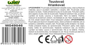 Hriankovač. rozmery 17x9.2x16cm. Páčkou vpravo sa toasty zasunú dovnútra. nastavením kolieska vpredu začne bežať časovač. Po vypršaní času toasty vyskočia.