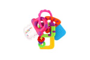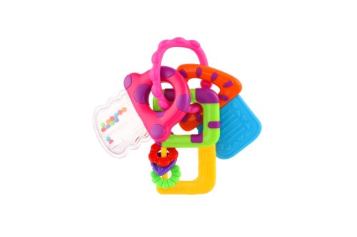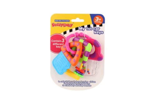 Táto sada predstieraných kľúčov zahŕňa hryzacie hryzátko na kľúče, dva kľúče ako hrkálky. Pohodlné spojenie vám umožní pripojiť hračky ku kočíku alebo taške, keď vyrazíte so svojim obľúbeným spoločníkom na cesty. Rozmer hračky: 10 x 12 cm Vhodné pre deti od 3 mesiacov