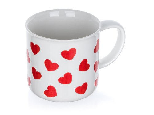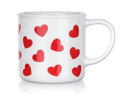 objem: 350 ml priemer: 8,8 cm výška: 8,6 cm materiál: keramika farba: biela dekor červená srdiečka