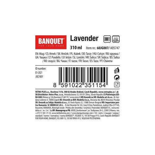 objem: 360 ml priemer: 9 cm výška: 8 cm materiál: keramika dekor: levanduľa balenie: 2 ks