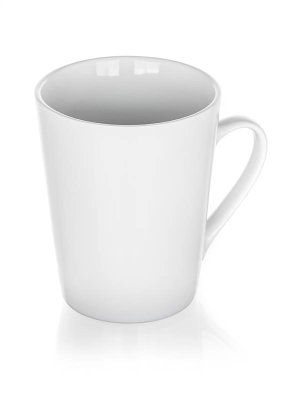 objem: 380 ml horný priemer 9 cm dolný priemer 6,6 cm výška: 11 cm materiál: keramika farba: biela