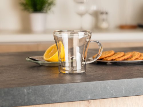 Dvojstenný sklenený hrnček DOBLO 200 ml je vhodný na podávanie studených aj horúcich nápojov