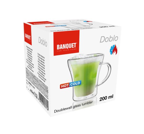 Dvojstenný sklenený hrnček DOBLO 200 ml je vhodný na podávanie studených aj horúcich nápojov Vďaka použitiu dvoch stien vydrží nápoj v hrnčeku dlhšie teplý ako v bežných hrncoch Hrnčeky sú vhodné do umývačky, NIE SÚ …
