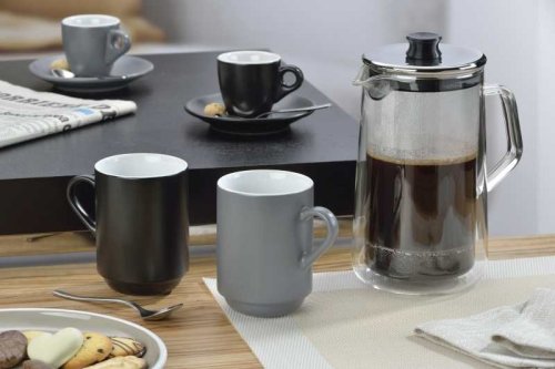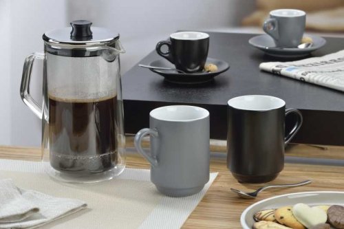Dáte si šálku kávy alebo čaju? Dvojdielna sada keramických hrnčekov s názvom Mattia. Košíčky sú k dispozícii v dvojdielnej sade v rôznych farbách a majú matný vzhľad. Farebná varianta šedá, 7,5 cm keramika, 11 cm v, 7,5 cm súprava 2 ks, 300 ml