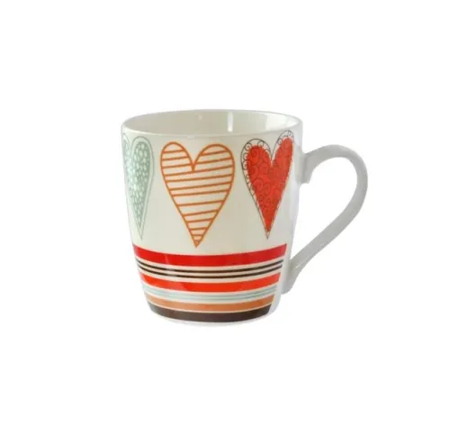 Hrnček SRDCE 230 ml je vyrobený z keramiky, vhodný na horúce aj studené nápoje. Výška hrnčeka 9 cm, priemer horný 8 cm. Hrnček je možné používať do mikrovlnnej rúry a umývať v umývačke riadu. EAN 8591177071617