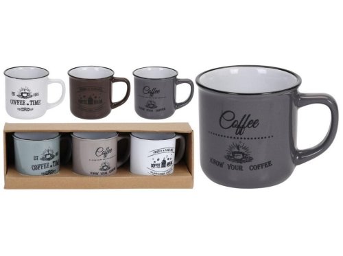 - materiál: keramika - objem: 330 ml - rozmery: 9 x 8.5 cm - sada obsahuje 3 kusy, od každej farby jeden