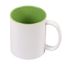 Biely lesklý keramický hrnček Vnútro svetlo zelený Vonkajšia strana je opatrená polyesterovou vrstvou Vhodný pre sublimačnú potlač Výška 95 mm, priemer 80 mm Objem 330 ml Ideálny darček pre najrôznejšie príležitosti …