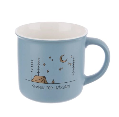 Dekorovaný hrnček SPÁNOK POD HVIEZDAMI s uchom. Materiál porcelán. Mix dekorov podľa skladovej dostupnosti. Objem 0.4 litra, priemer 9.7 cm a výška 8.5 cm. Vhodný do umývačky aj MVT. EAN 8592381238612