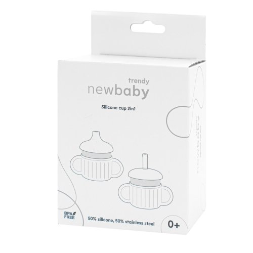 "Silikónový hrnček 2 v 1 značky New Baby, ktorý spája moderný dizajn s funkčnosťou, ideálny pre deti už od prvých dní života (0+). Vlastnosti produktu: Prémiový materiál: Hrnček je vyrobený z 50% z mäkkého silikónu az 50% z nerezovej ocele, čo zaisťuje trvanlivosť a bezpečné používanie. potrieb dieťaťa. Objem 220 ml: Perfektný na prvé nápoje vášho bábätka. Ergonomické držadlá: