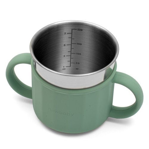 "Silikónový hrnček 2 v 1 značky New Baby, ktorý spája moderný dizajn s funkčnosťou, ideálny pre deti už od prvých dní života (0+). Vlastnosti produktu: Prémiový materiál: Hrnček je vyrobený z 50% z mäkkého silikónu az 50% z nerezovej ocele, čo zaisťuje trvanlivosť a bezpečné používanie. potrieb dieťaťa. Objem 220 ml: Perfektný na prvé nápoje vášho bábätka. Ergonomické držadlá: