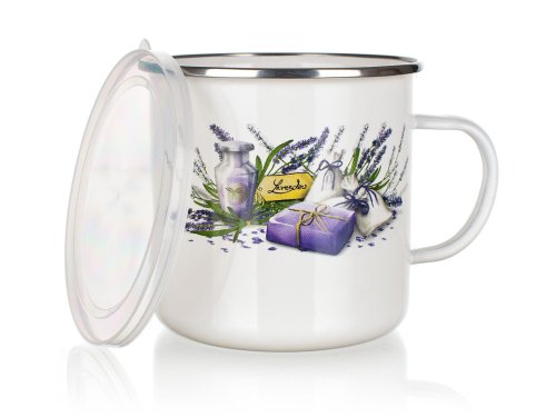 Smaltovaný hrnček LAVENDER 0,7 ls plastovým viečkom.