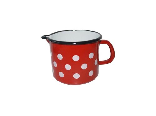 Materiál: kov, smalt Farba: červená, biele bodky Výška: 11 cm Priemer: 12cm Objem: 1,2 l