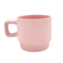 Matný keramický hrnček s vrúbkovaným dnom a hranatým uškom Vonkajšia strana je opatrená polyesterovou vrstvou Vhodný pre sublimačnú potlač Výška 82 mm, priemer 91 mm Objem 300 ml Farba ružová
