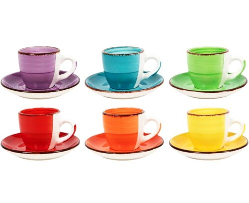 12 ks Keramická kávová súprava COLOURS - 6 x šálka na kávu + 6 x podšálka