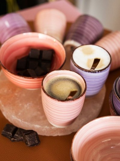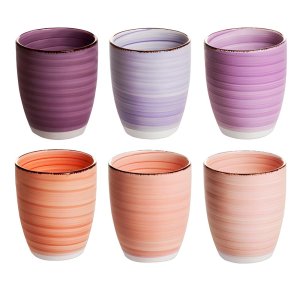 Táto sada obsahuje šesť šálok s objemom 350 ml, v rôznych kontrastných odtieňoch fialovej a ružovej farby. Vnútro šálok je farebne glazované vo farbe šálky.