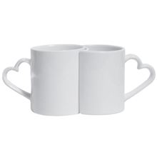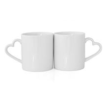 Set dvoch keramický hrnčeky pre sublimačnú potlač Ozdobná rukoväť v tvare srdca Hrnčeky majú certifikát o hygienickej nezávadnosti Ideálny darček pre rôzne príležitosti Výška 95 mm, priemer 82 mm