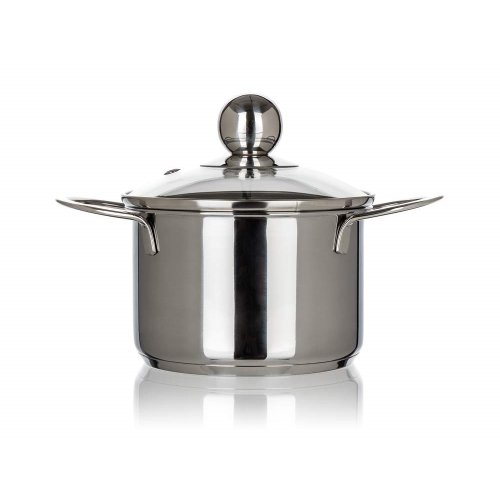 Nerezový kastról PICCOLO, so sklenenou pokrievkou, je možné používať na všetky typy varných dosiek vrátane indukcie.