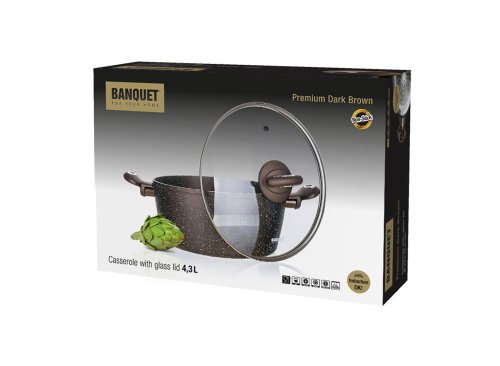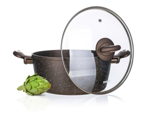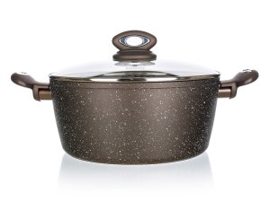 Hliníkový liaty kovaný vysoký hrniec PREMIUM DARK BROWN s nepriľnavým povrchom, so sklenenou pokrievkou.