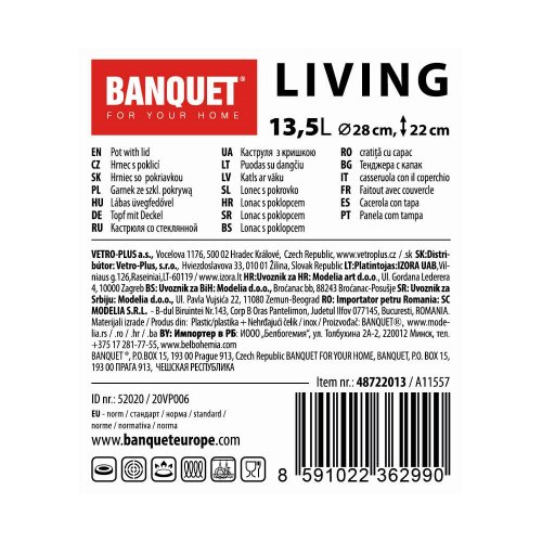 Hrniec 28 cm, so sklenenou pokrievkou, 13,5 l, nerez, LIVING. priemer: 28 cm výška: 22 cm objem: 13,5 l materiál: nerez 201, sklenená pokrievka Nerezový hrniec LIVING so sklenenou pokrievkou, nerezovým knobom a …