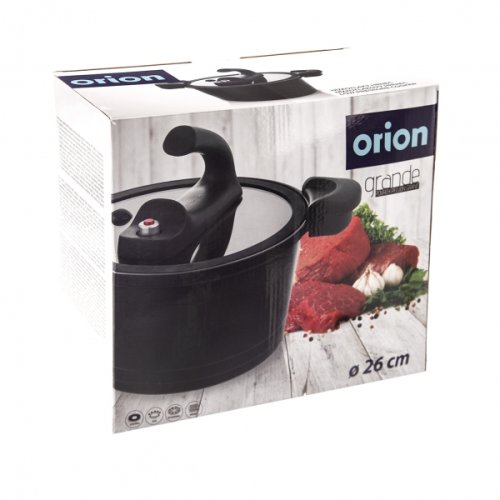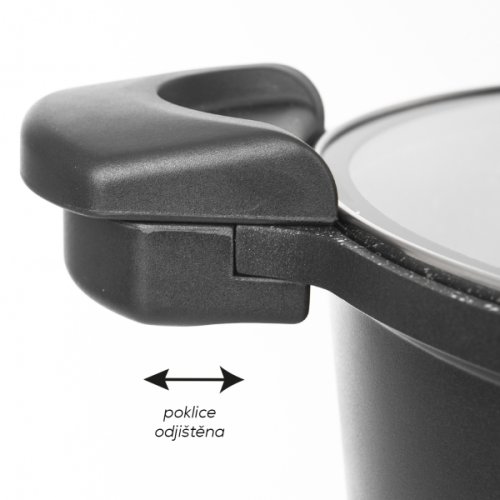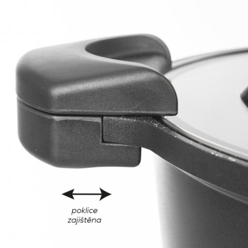Nízkotlakový hrniec s pokrievkou šetrí energiu a skracuje dobu prípravy potravín. Pri varení s nasadenou a zaistenou pokrievkou sa znižuje strata pary na minimum. Časť pary vznikajúca v hrnci kondenzuje na potravinách a svoju energiu tak odovzdáva pripravovaným potravinám, ďalšia časť pary kondenzuje na samotnom hrnci a vo forme horúcej vody padá späť do hrnca. Vďaka tomuto procesu je možné v hrnci variť s podstatne menším množstvom vody a tým sa spotrebuje až o 50 % menej energie ako pri bežnom varení. Dochádza k zachovaniu cenných látok v potravinách a rovnako tak je zachovaná vlastná chuť potravín. V pokrievke hrnca je umiestnený parný ventil, ktorý zaisťuje neustále vyrovnávanie tlaku medzi vnútrom hrnca a okolím. Vďaka ventilu je už od začiatku varenia zabránené prípadnému nebezpečenstvu z dôvodu pretlaku, ktoré môže vzniknúť pri tlakových hrncoch. Pokrievka sa uzavrie posunutím hornej časti uší smerom k stredu. Pokrievku hrnca je možné vďaka neustálemu vyrovnaniu tlaku kedykoľvek sňať a hrniec používať na klasické varenie. Energeticky úsporný hrniec je vhodný pre všetky druhy sporákov, teda plynové, elektrické, so sklokeramickou doskou a indukčnou. Nie je určené na použitie v rúre. Hliník s povrchovou úpravou, vo vnútri hrnca je 2vrstvový nepriľnavý povrch, zvonku vrstva PTFE, sklo, plast, nerez, bakelit. Hrniec je možné umývať v umývačke riadu, pokrievka nie. Objem 5.5 litra, priemer 26 cm, šírka s uchami 37 cm, výška 14/23 cm. EAN 8592381164355