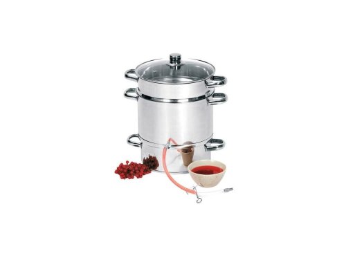 "rozmery: priemer 25 cm, výška celej súpravy 39 cm objem: 8 l zloženie súpravy: nádoba na vodu, nádoba na šťavy s vyprázdňovacou trubicou, nádoba na ovocie