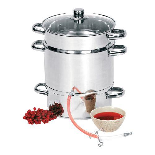 Veľký nerezový hrniec na odšťavovanie, vhodný na prípravu domácich štiav a marmelád. Hrniec je skladný, jednotlivé diely do seba zapadajú."
