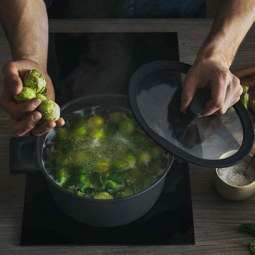Sklenená pokrievka so silikónovým lemom má zabudovanú funkciu zlievania