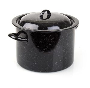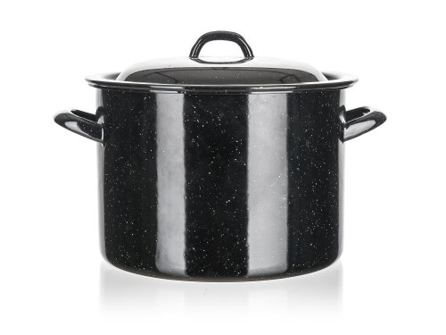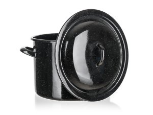 Smaltovaný hrniec so sklenenou pokrievkou. Hrniec je možné používať na všetky typy varných dosiek mimo indukcie.