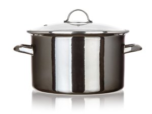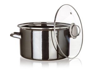 Smaltovaný hrniec METALLIC Black so sklenenou pokrievkou. Hrniec je možné používať na všetky typy varných dosiek vrátane indukcie.