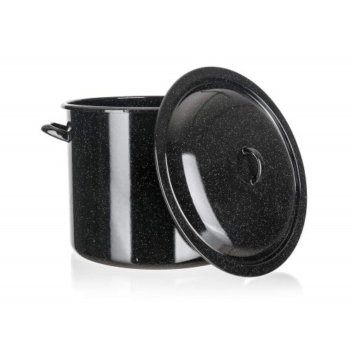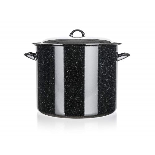 Smaltovaný hrniec so sklenenou pokrievkou. Hrniec je možné používať na všetky typy varných dosiek mimo indukcie.
