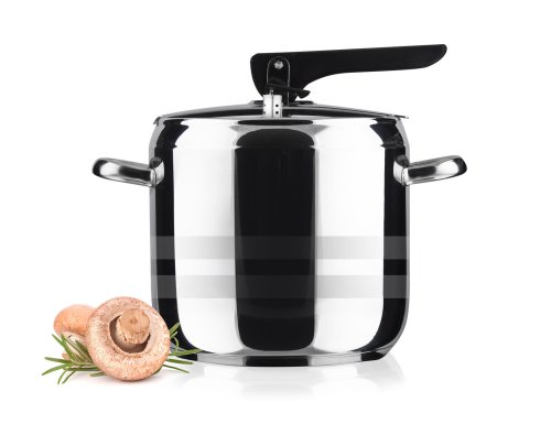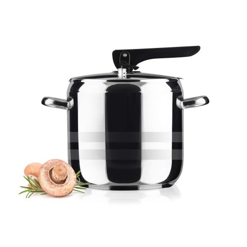 Nerezový tlakový hrniec s pákovým uzáverom. Veko obsahuje dva ventily, hlavný pracovný ventil a pomocný / bezpečnostný ventil. Tlakový hrniec je určený na rýchlu prípravu pokrmov a je možné ho používať na všetky typy varných dosiek vrátane indukcie.