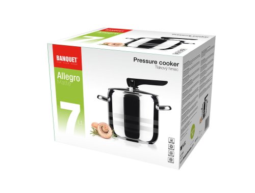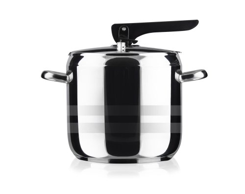 Nerezový tlakový hrniec s pákovým uzáverom. Veko obsahuje dva ventily, hlavný pracovný ventil a pomocný / bezpečnostný ventil. Tlakový hrniec je určený na rýchlu prípravu pokrmov a je možné ho používať na všetky typy varných dosiek vrátane indukcie. Veko tlakového hrnca obsahuje hlavný pracovný ventil a pomocný ventil pre prípad zanesenia pracovného ventilu, čo robí hrniec maximálne bezpečný. Hrniec je vyrobený z pevného materiálu, má silné dno a je možné ho používať na všetky typy varných dosiek.