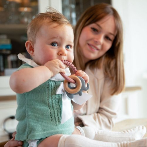 vďaka rôznym textúram a tvarom na silikónových častiach mierni bolesti pri prerezávaní zúbkov