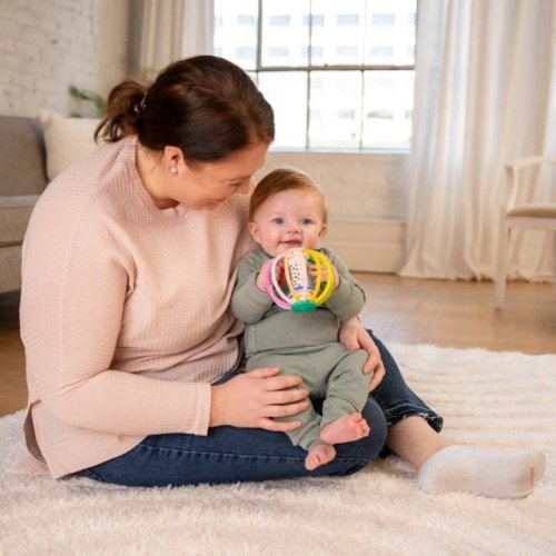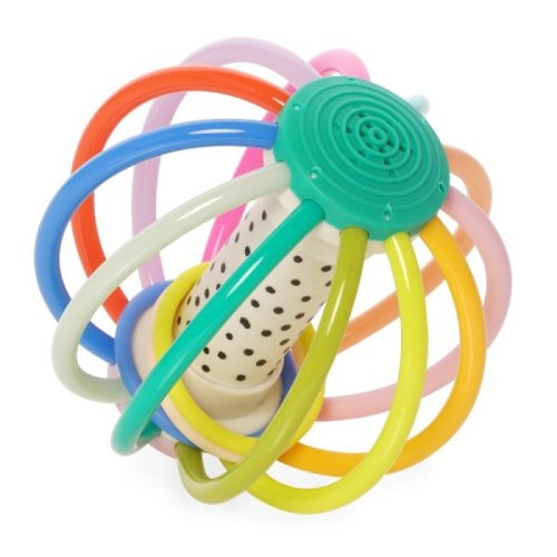 Hryzátko v tvare loptičky je ideálne nielen na uchopenie, trasenie a kotúľanie, ale napomáha tiež tlmiť bolesť ďasien pri prerezávaní prvých zúbkov.
