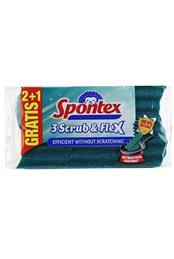 Spontex extra ohybná hubka na riad Scrub&Flex s abrazívnou vrstvou bude skvelým pomocníkom pri umývaní riadu. Účinne a ľahko vyčistí každý záhyb bez poškriabania.