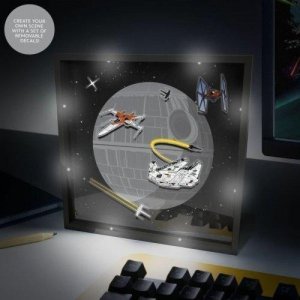 Originálnu lampičku v podobe zarámovaného obrazu s Hviezdou smrti si môžete sami prispôsobiť pomocou priložených nalepovacích obrázkov vesmírnych plavidiel zo sveta Star Wars – Hviezdnych vojen.